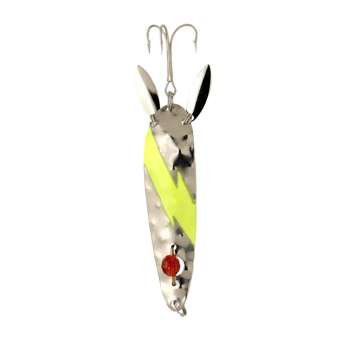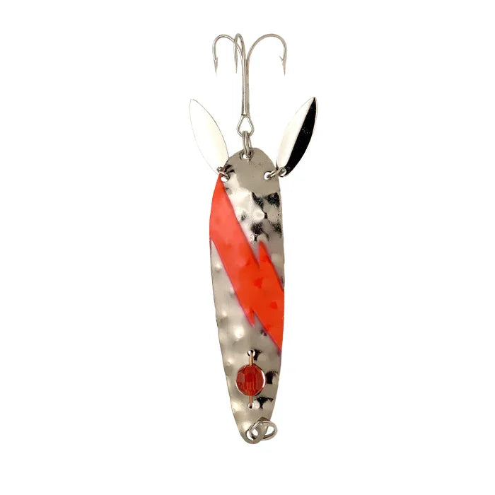 Laiton martelé / Queues de flipper actives / Œil à facettes rouges / Plein d'action pour attirer le saumon, la truite et le brochet