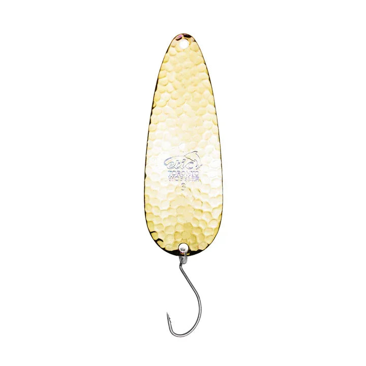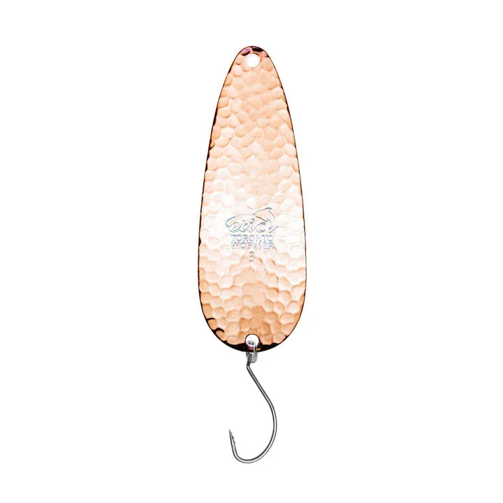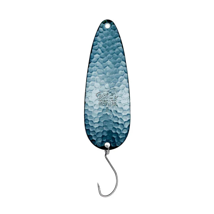 La cuillère Toronto Wobbler Spoon Hammered d'Etic est la cuillère la plus populaire de l'industrie depuis plus de 60 ans et demeure, année après année, l'une des plus populaires du marché. Quelle que soit l'espèce ciblée, la Toronto Wobbler est un classique intemporel. Elle est idéale pour pêcher plusieurs types de poissons comme la truite, le saumon, le brochet, le doré, l'achigan, la truite arc-en-ciel, le touladi et bien d'autres. Son mouvement rotatif crée une vibration constante dans l'eau, la rendant très efficace. Disponible en plusieurs tailles, elle est livrée avec un hameçon VMC® Octopus.