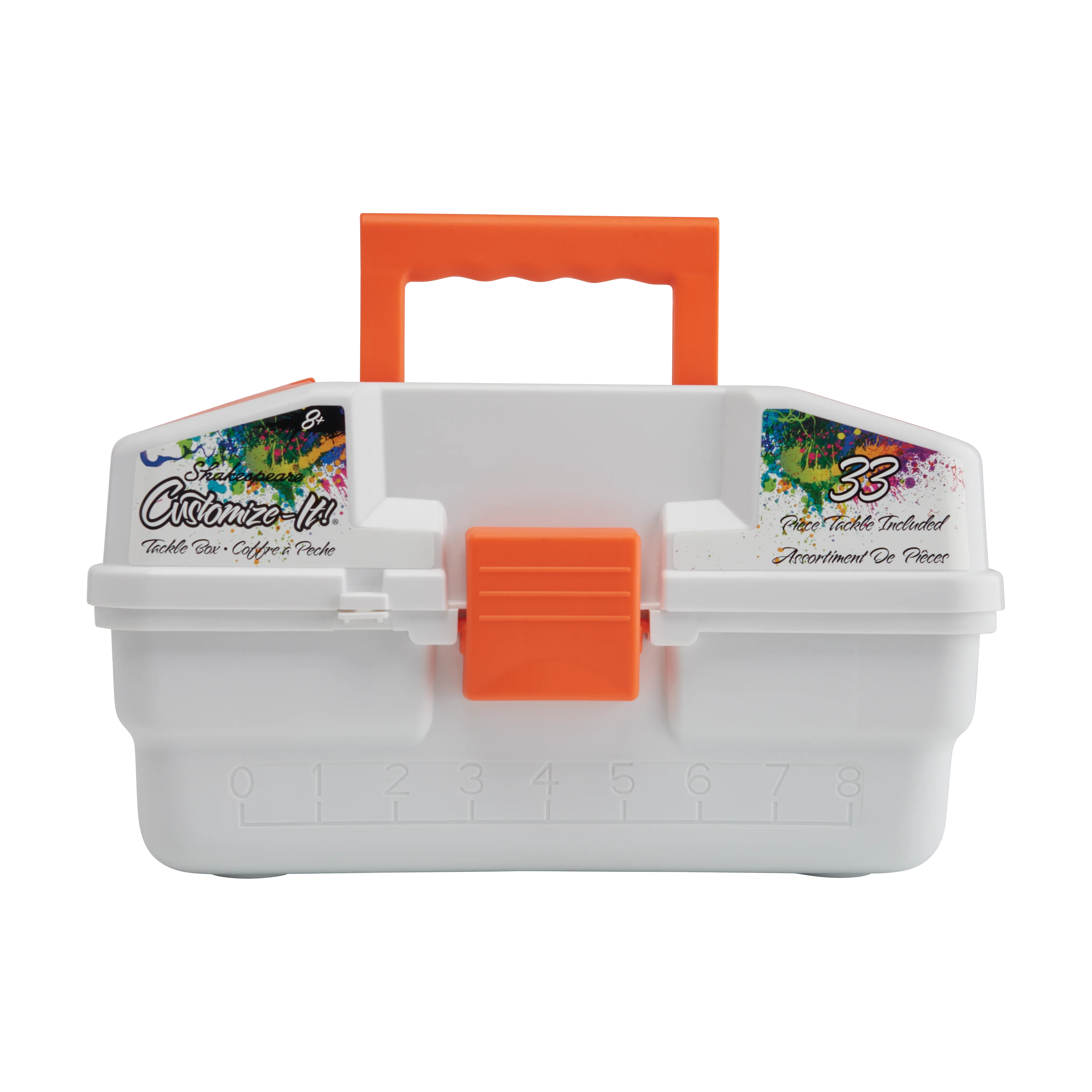 boîte à pêche personnalisable Shakespeare® est conçue pour les jeunes pêcheurs d'aujourd'hui, dynamiques et créatifs. Elle contient 29 articles de pêche variés, 2 leurres d'entraînement, un carnet de pêche et 3 planches d'autocollants personnalisables permettant de décorer sa boîte à son goût. Les autocollants représentent des formes, des lettres et différentes espèces de poissons de tailles variées. Le plateau anti-déversement maintient les articles de pêche en place une fois le couvercle fermé.