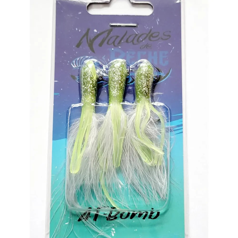 Le AT-BOMB est de loin, tous leurres confondus, le meilleur leurre à truite sur le marché. Une fois mouillées, les plumes forment une queue souple dans l’eau qui déclenche des attaques de malade de la part des salmonidés. Un leurre à avoir absolument dans votre coffre à pêche ! Quand la pêche est difficile, le AT-Bomb sauvera certainement votre journée.