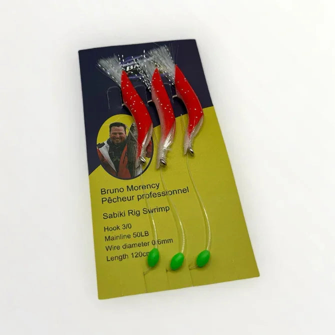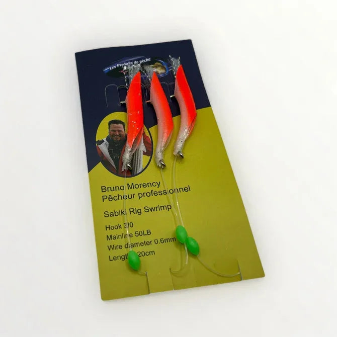 Les Sabiki Rig Crevette sont d'excellentes proies pour tous les poissons de fond. Ils représentent à la perfection la nourriture de plusieurs espèces. Leurs couleurs fluorescentes qui illuminent dans le noir attirent les prédateurs à très longues distance.