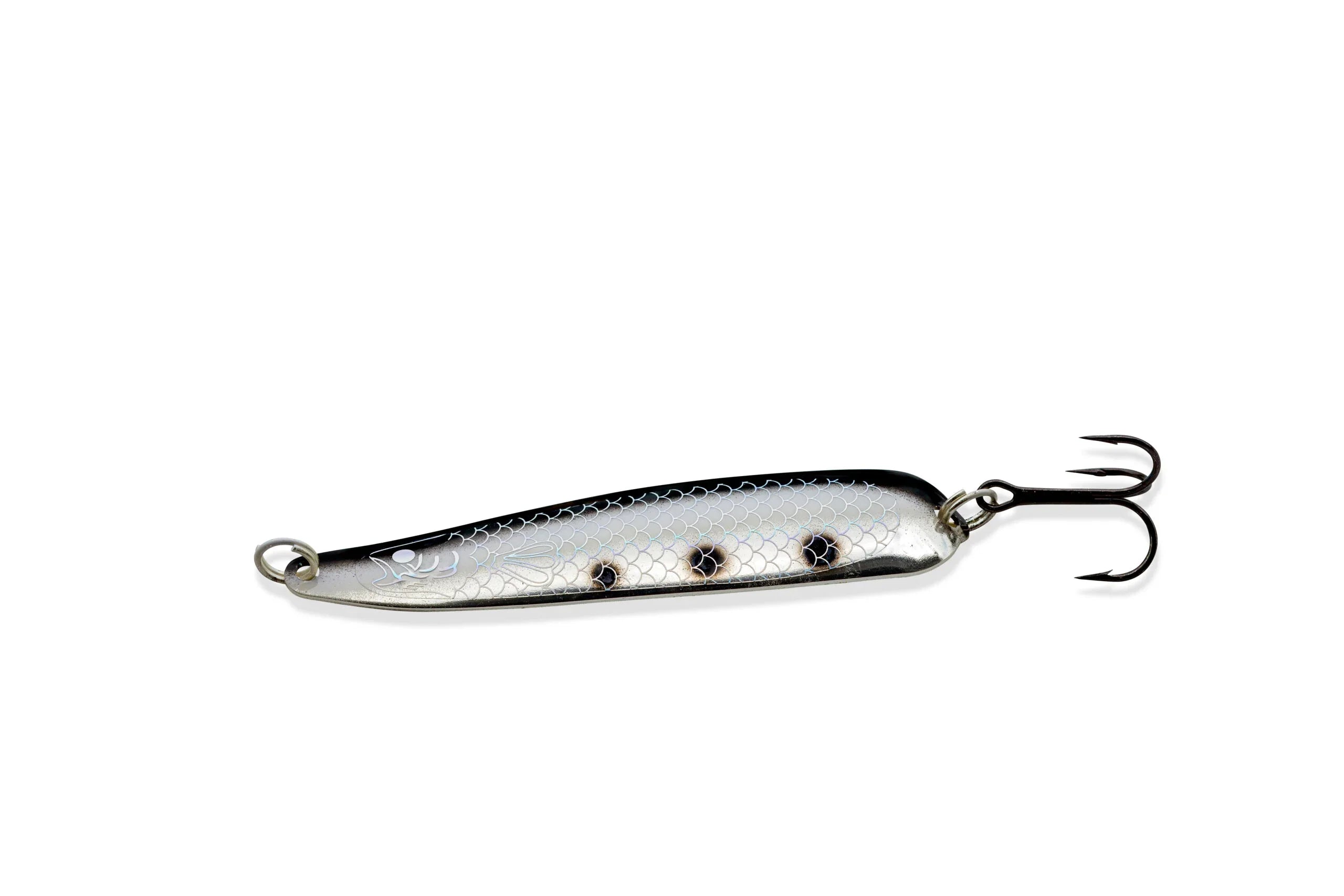 Le Williams Quick Silver a été conçu pour l'action. Un favori de longue date des pêcheurs Chinook du lac Ontario, le Quick Silver est conçu pour imiter un poisson-appât qui donne des fléchettes. Avec des finitions en métaux précieux de renommée mondiale de Williams, de l'or 24 carats et de l'argent de qualité bijoux, qui reflètent la lumière plus loin et plus lumineuse que toute autre finition connue. Troll the Quick Silver avec un downrigger, un plongeur dipsy ou un leadcore, ou avec un mono droit pour la pêche en début de saison en eau peu profonde. Jetez-le et enroulez-le avec des mouvements de secousse. Vous pouvez même le jiger sous la glace ! Ce sera un aimant pour le saumon, la truite et le charbon, mais aussi pour tout brochet ou doré qui passe.